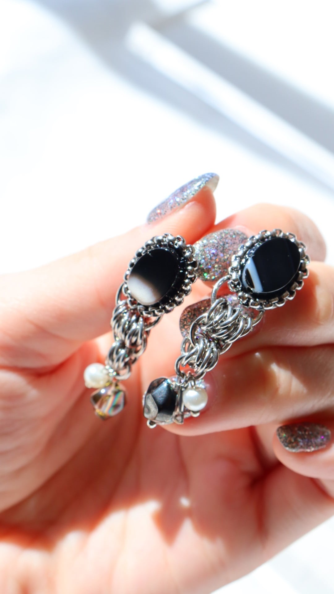 オプションより金具の選択をお願いします。 ________ ︎ ブラックカラーの天然石ビーズを使用した重厚感のある大人なデザインとなっています。 シルバーパーツをふんだんに使うことで全体をバランスよく形創りました。 ブラックカラーのガラスビーズが光の加減でオーロラに輝き更に美しさを感じられる1点となっています。 普段使いから特別な日の装いにも最適です。 ________ pierce : ステンレスポスト earring : ネジ式(痛み軽減シリコン付) material : natural stone , glass , stainless ________ ________ ブラック 黒 シルバーピアス 大人可愛い 大振りピアス 揺れるピアス ガラス 天然石 パーティー フォーマル 綺麗めカジュアル 特別な日 存在感
