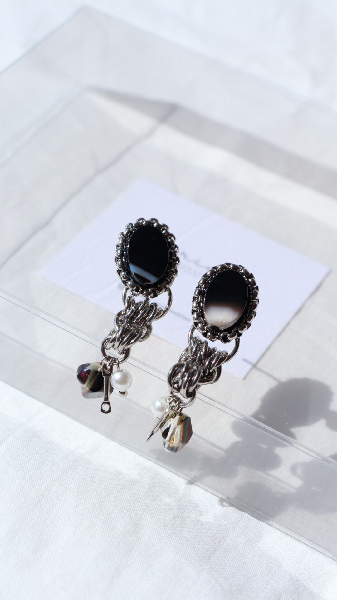 ブラック 黒 シルバーピアス 大人可愛い 大振りピアス 揺れるピアス ガラス 天然石 パーティー フォーマル 綺麗めカジュアル 特別な日 存在感