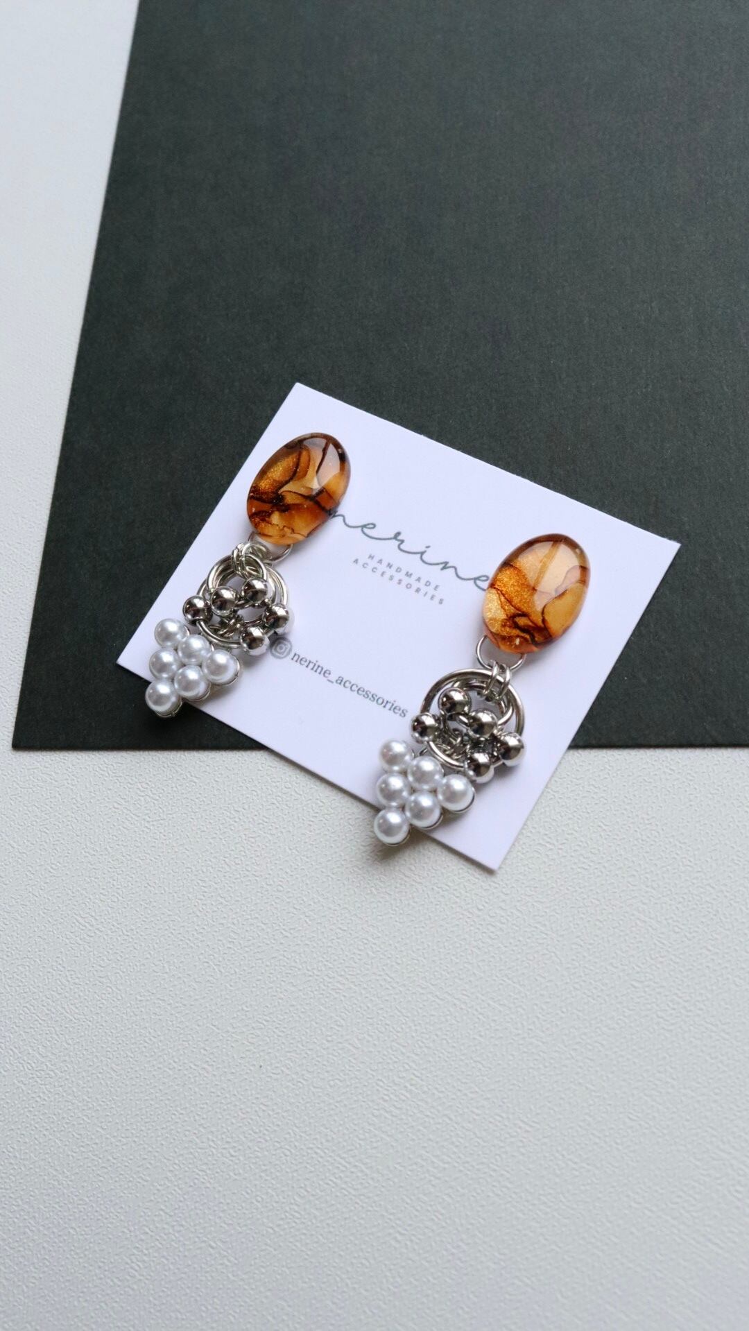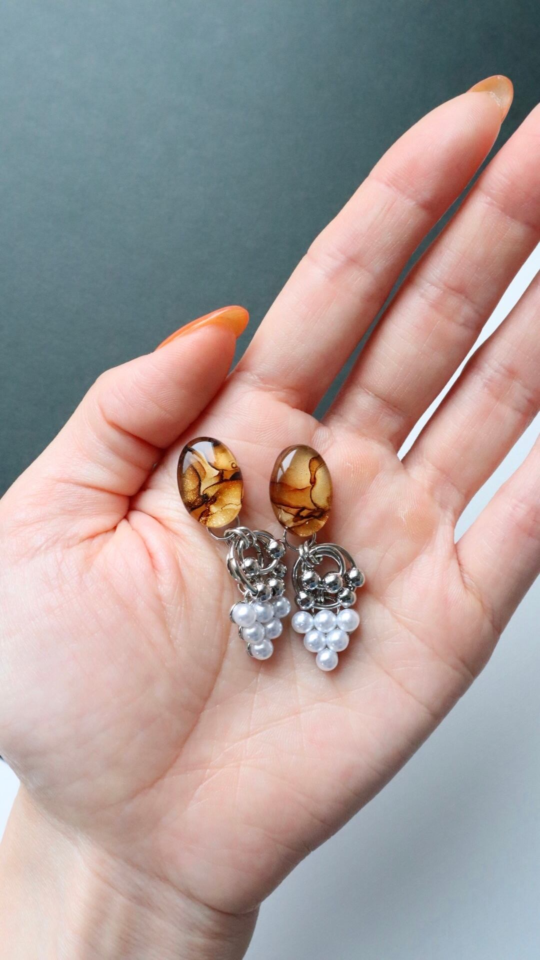 ︎ ▪︎アルコールインクアートで作り出す、世界に一つだけの幻想的なデザインのピアス , イヤリングです。